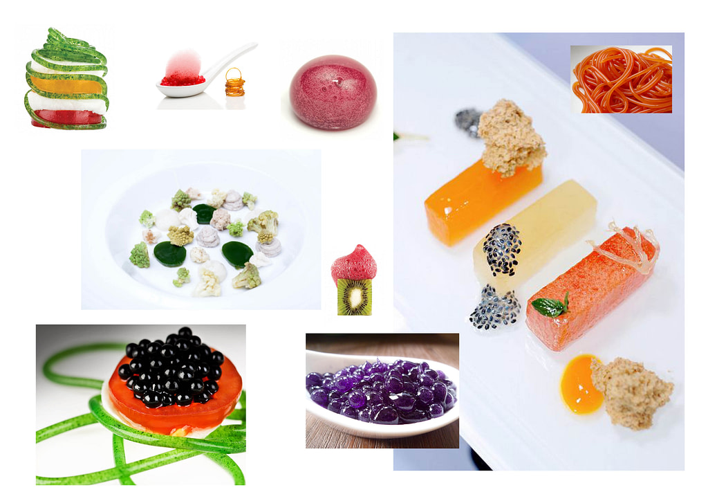 Les matériaux utilisés sont variés : pâtes, sauces, chocolat, sucre ou pâtes de fruits. Dans un futur plus lointain, on pourrait imaginer manipuler molécules et atomes pour créer des textures et couleurs impossibles à obtenir autrement.
