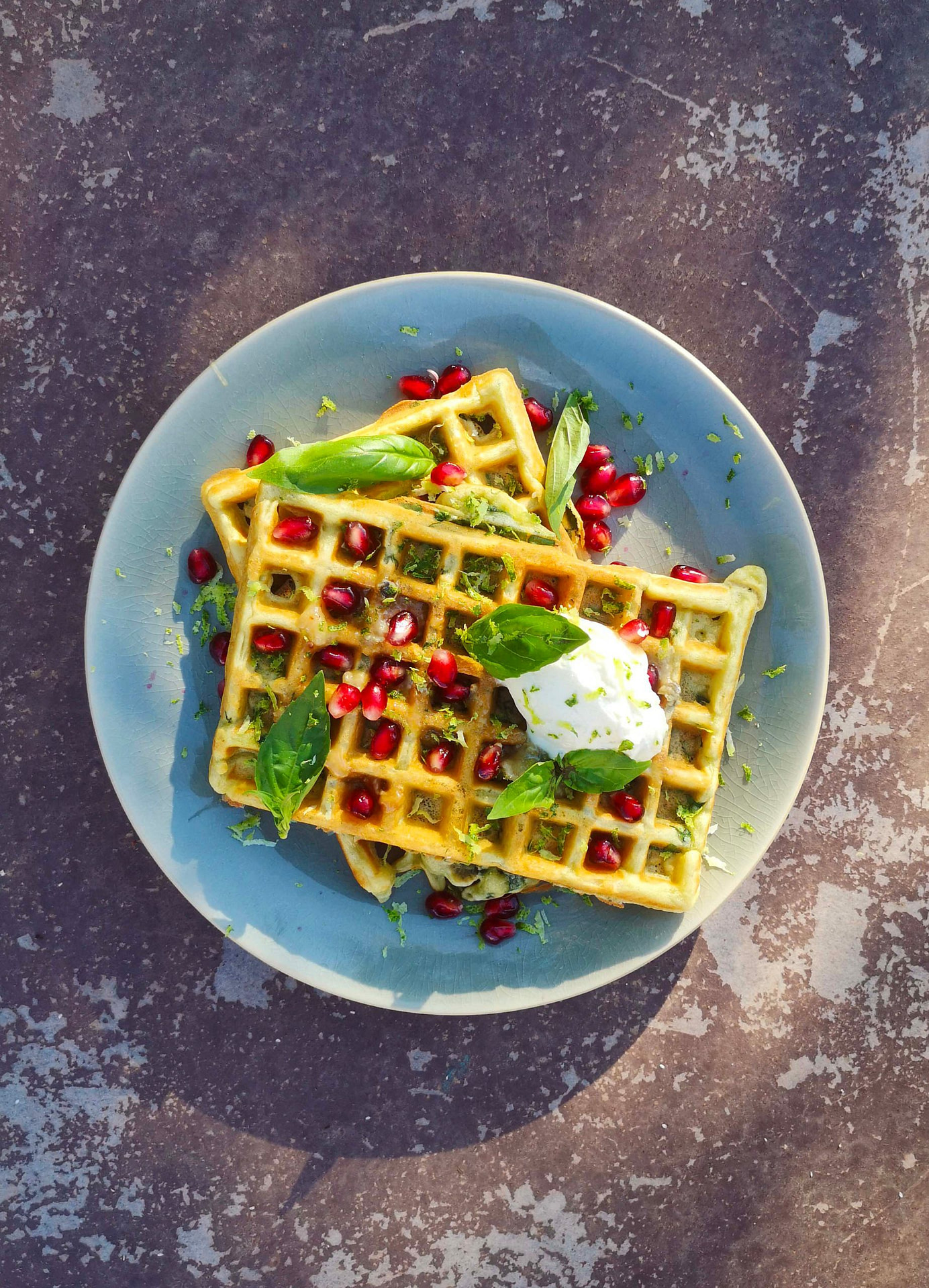 Gaufres salées aux verts de blettes, citron & basilic