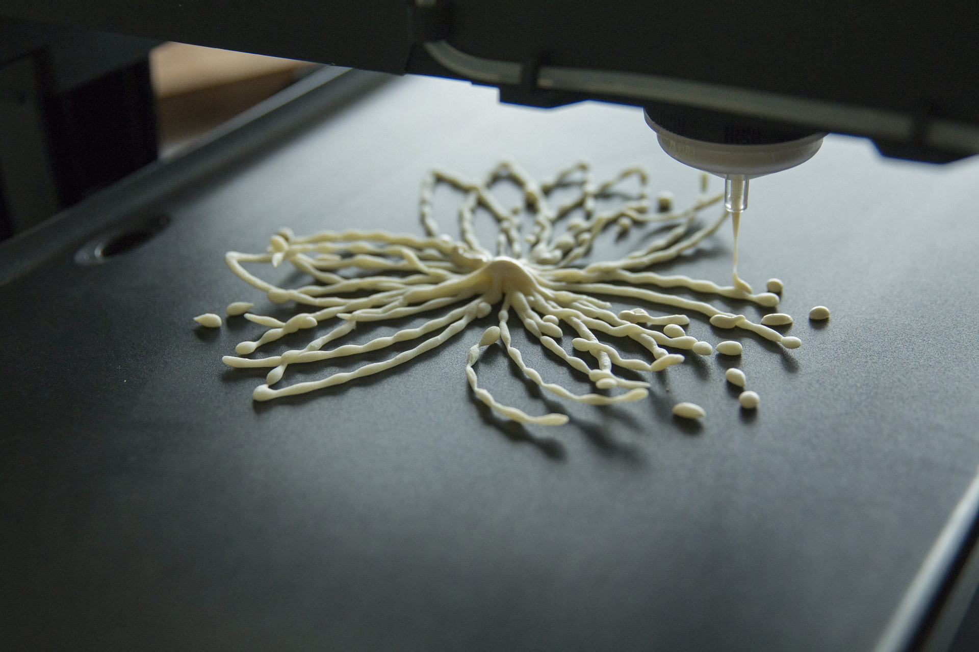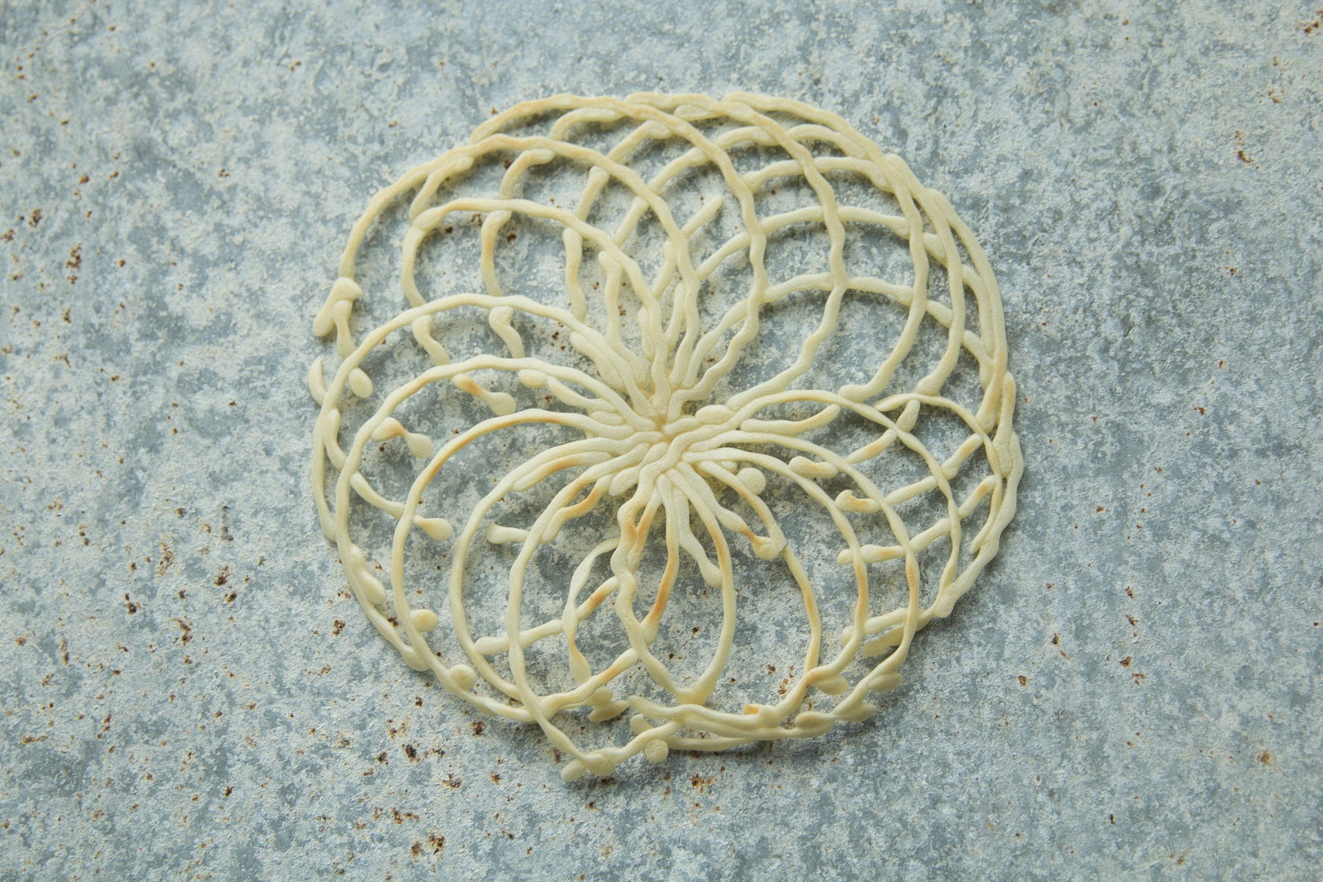 J’ai exploré le potentiel de la PancakeBot, machine d’impression 3D alimentaire, pour créer des motifs fins et délicats, presque comme de la dentelle comestible. Mon objectif était de transformer un simple pancake en véritable bijou culinaire, en jouant sur la précision, la forme et la créativité.